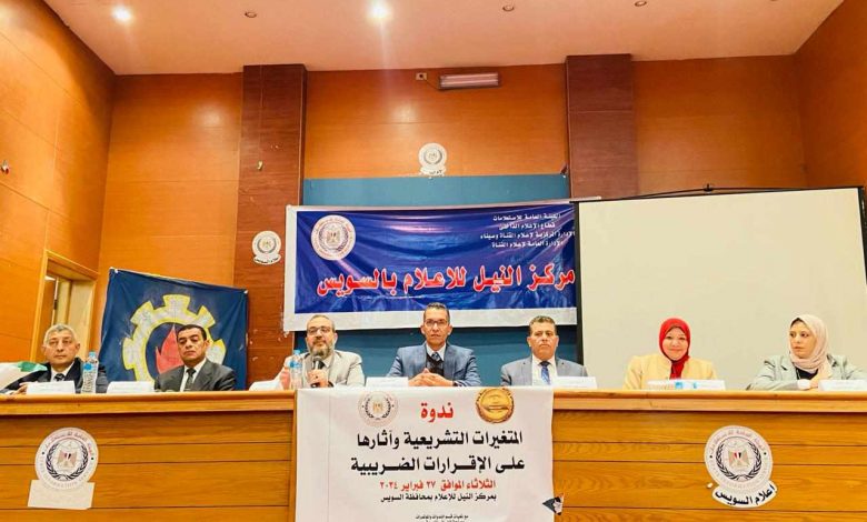 تم تنفيذ اليوم ندوه حول المتغيرات التشريعية وآثارها على الاقرارات الضريبية حاضر فيها الاستاذ رجب محروس رئيس مصلحة الضرائب والاستاذ محسن الجيار مدير عام خدمة العملاء بمصلحة الضرائب فى إطار التعاون المشترك بين الهيئة العامة للاستعلامات برئاسة الدكتور ضياء رشوان رئيس الهيئة وتوجيهات الدكتور أحمد يحيى رئيس قطاع الإعلام الداخلى ومصلحة الضرائب والغرفة التجارية بالسويس